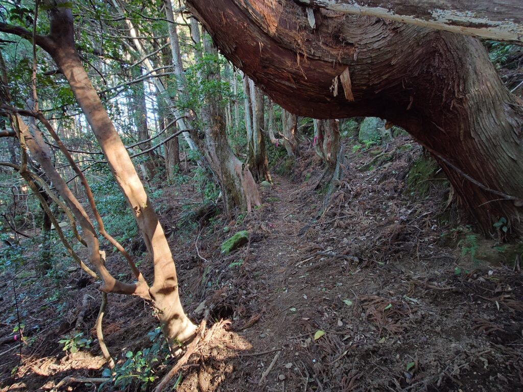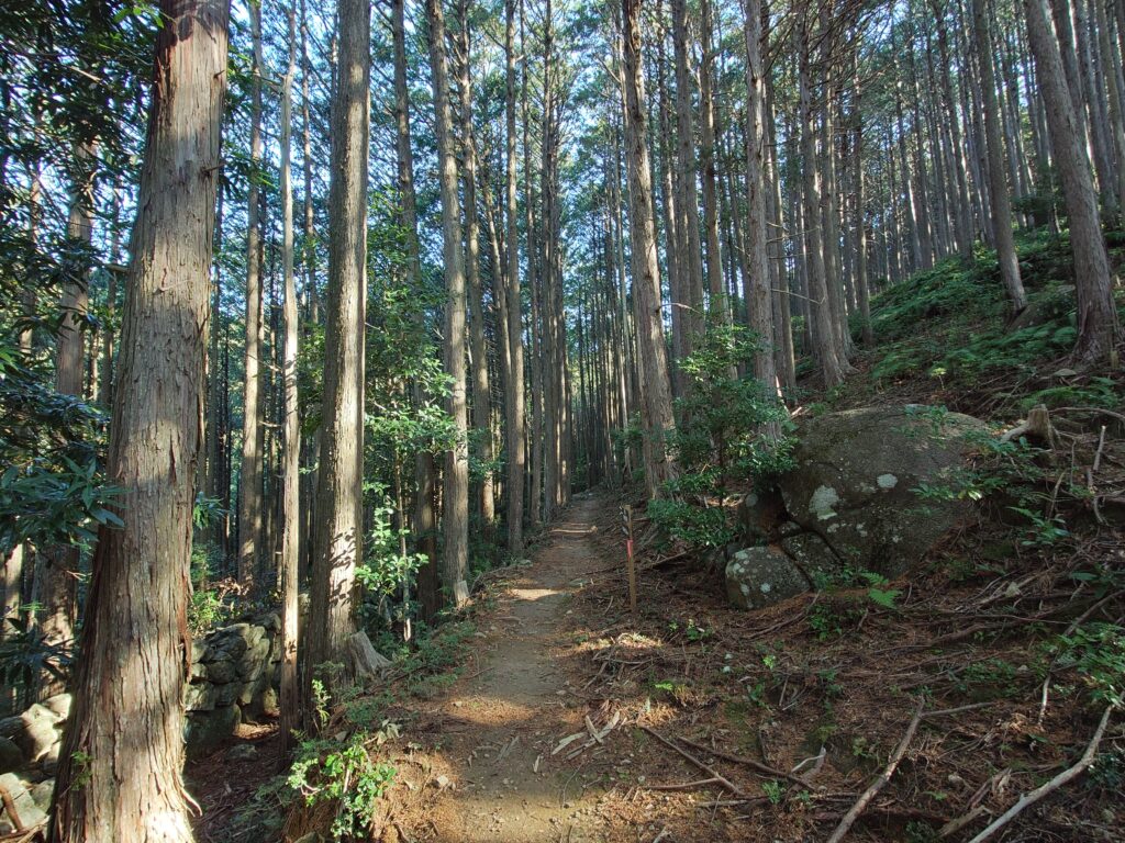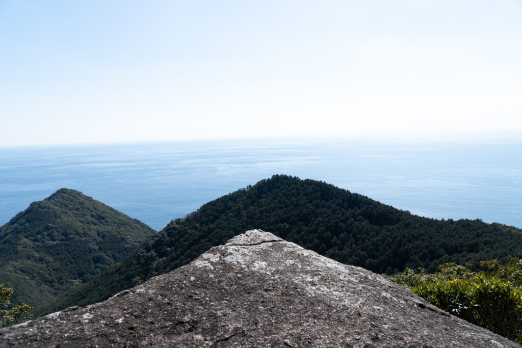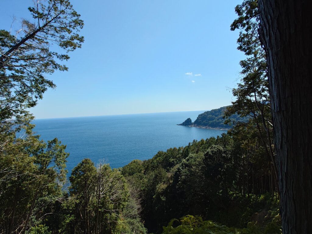 登るにつれて背後から差し込む海風が心地よく、振り返ると尾鷲の青い海が見えてきます。この景色に励まされながら、一歩一歩確実に標高を稼いでいきました。