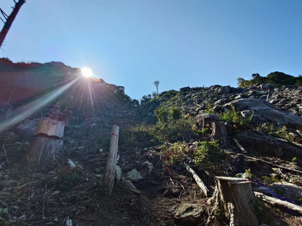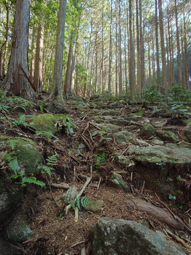 しかし、その穏やかさも長くは続かず、頂山へ向かう道に入ると勾配は一気に急になります。急な登りが続き、足を一歩持ち上げるごとに息が上がっていくのを感じました。