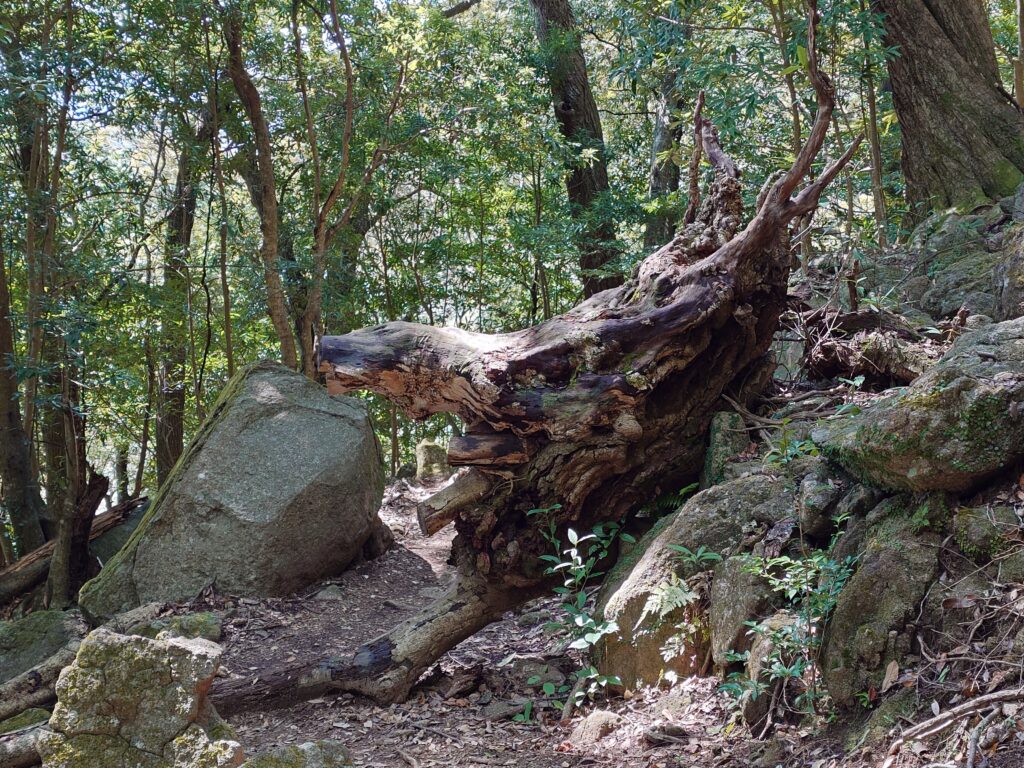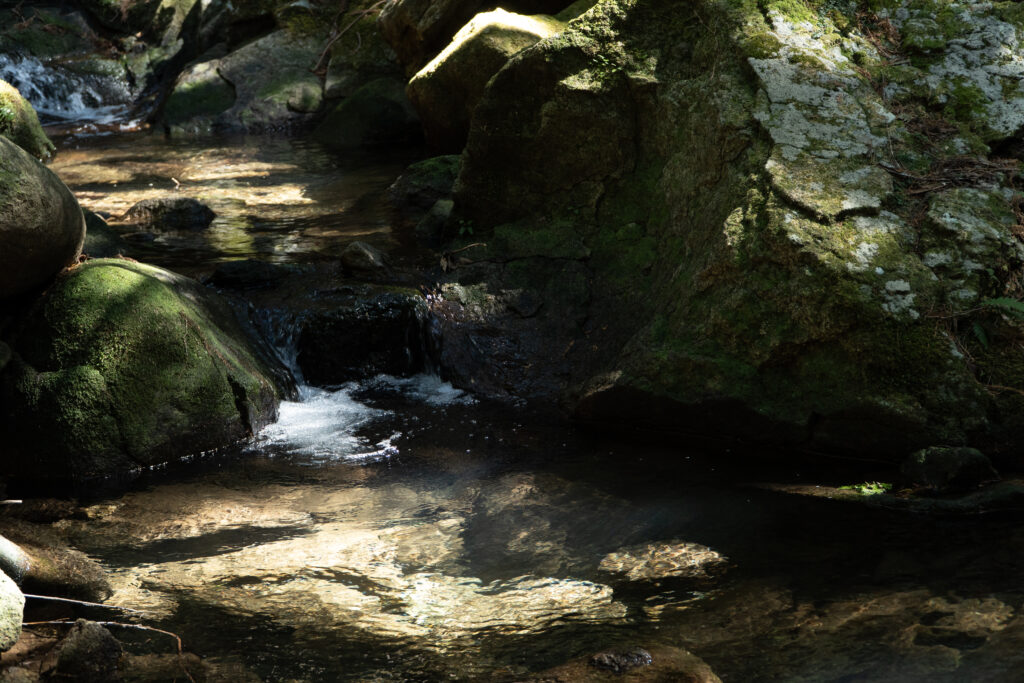 途中には沢沿いのルートもあり、水の音が心地よく耳に届きます。岩を越え、木の根を踏みしめながら進む道は、まさに自然の中を歩いている実感に満ちています。太陽の光が木漏れ日となって足元を照らし、どこか神秘的な雰囲気が漂っていました。