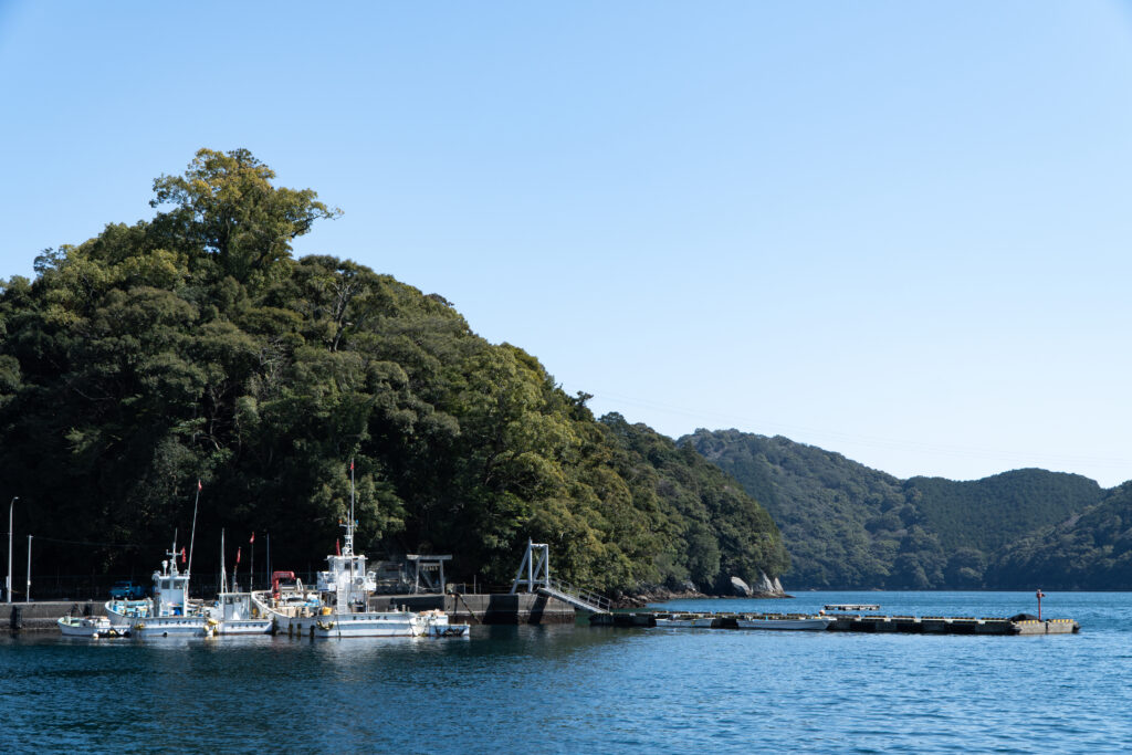 オハイで十分に景色を楽しんだ後は、九鬼漁港へ下山します。こちらのルートは比較的歩きやすく、海を近くに感じながら降りていける道です。徐々に視界が森から海へと変わり、町の匂いや音が近づいてくるのを感じられます。